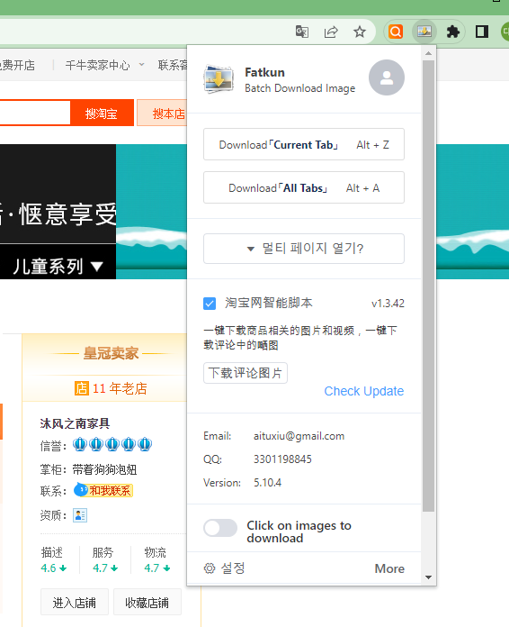저는 현재 타오바오 창만 켜져 있기 때문에 Download Current Tab / Download All Tab을 누르던 상관없이 이 창에 대한 모든 사진과 동영상이 다운로드 되겠죠.