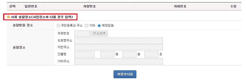 서류 송달장소 는 사업장소와 다를 경우 입력 해주시면 됩니다.