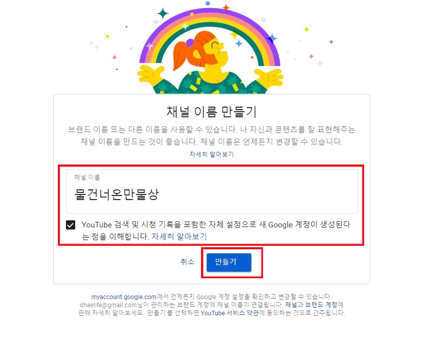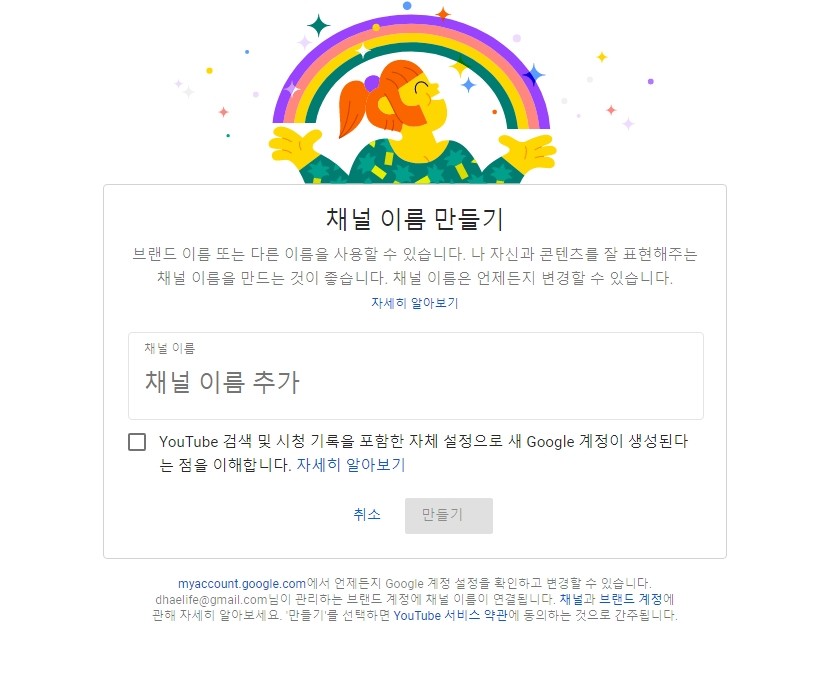 채널 이름을 정해서 채널이름 칸에 입력합니다.