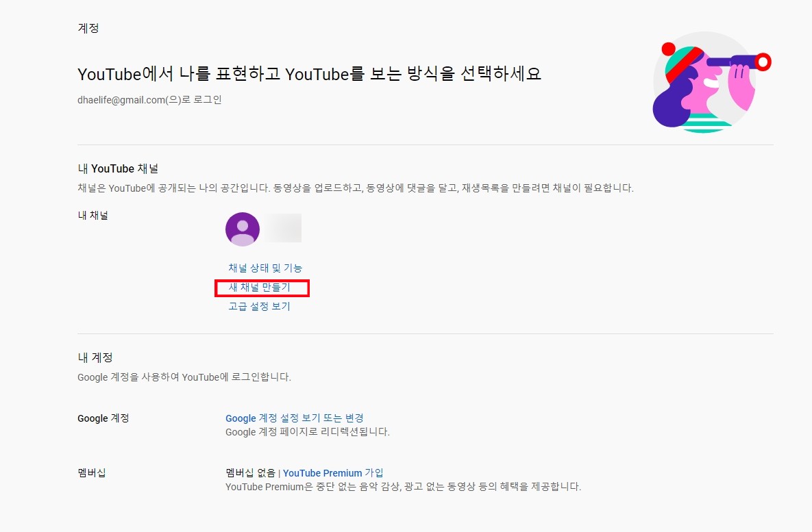만들기 클릭하면 이렇게 새로운 채널이 만들어진 것을 확인 할 수 있습니다.