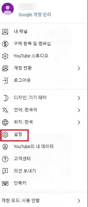사람 모양 클릭 후 설정 항목 눌러주세요.